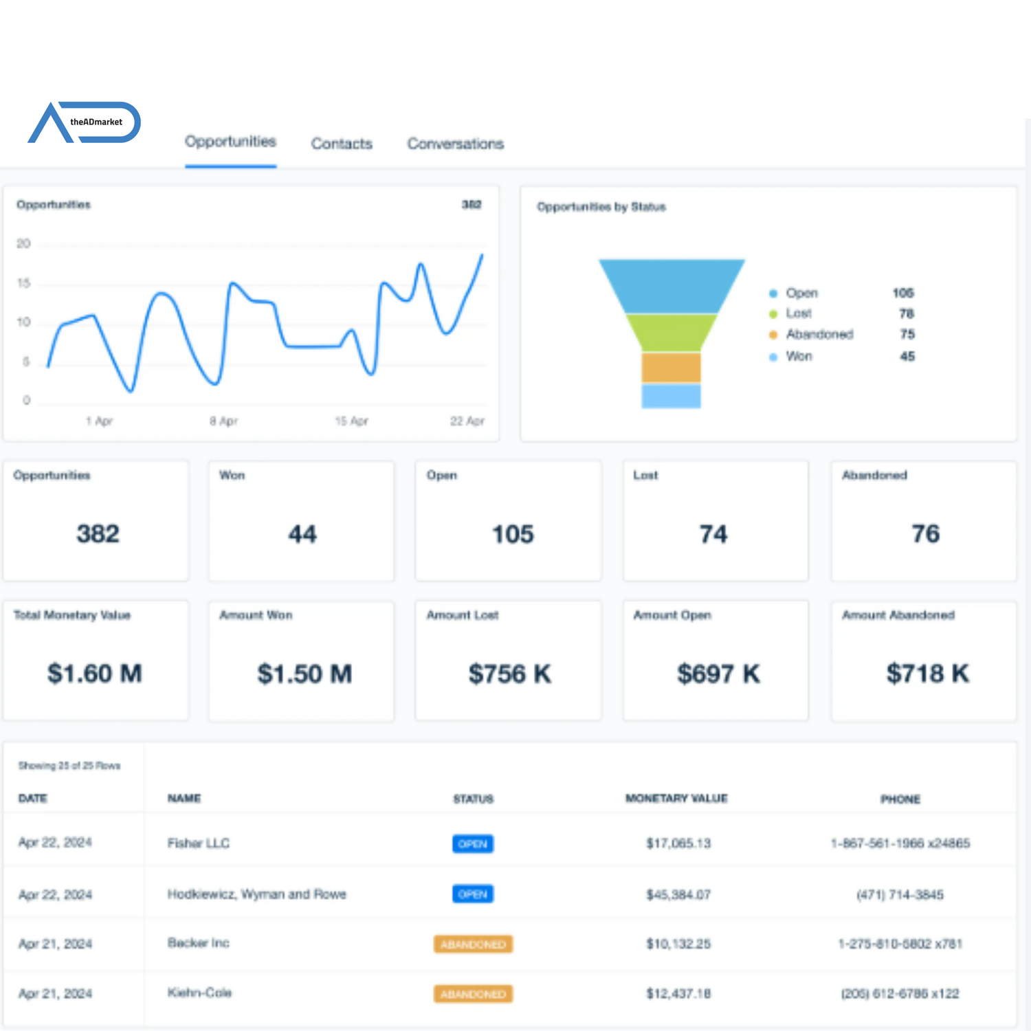 TheADmarket Growth Platform is your all-in-one sales, marketing, and automation solution — designed for businesses ready to grow without the overheads. Whether you run it yourself or you work with us to manage the process, every feature is built to save time and scale revenue.